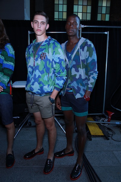 Fred says: “Hilfiger’s collections are always preppy, but this season he made preppy more modern, inspired by contemporary art. He chose the artists he collects himself and focused on Andy Warhol and Basquiat for this Warholesque camo print. He applied the pattern onto jackets and shorts in a red/purple/pink mix and a cropped jacket and sweater in blues and blacks seen here.”