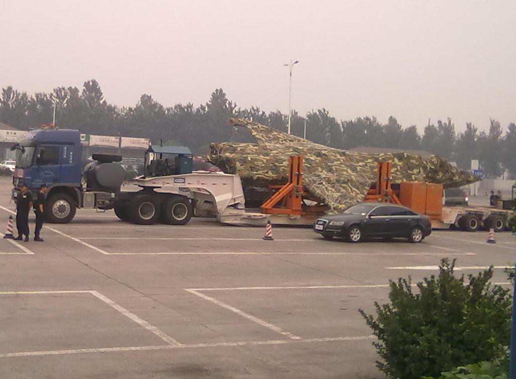 This week a photograph emerged of what appears to be a new Chinese fighter. The mysterious aircraft wrapped in a camouflage tarpaulin was delivered from Shenyang by flat-bed lorry to a testing location. The shape (it is possible that it is a mock-up) appears to have no tail surfaces or canopy fitted. It is likely that this is the new Shenyang Aircraft Corporation J-21 (the designation J-60 has been used by some in connection with this aircraft), the Chinese equivalent to the US Lockheed Martin F-35 Lightning II. The shape is apparently similar to that of the F-35, with faceted low-RCS shaping and a conventional wing and tail. The aircraft seems to be somewhat smaller than the F-35 (which is 15.67 m long), with an estimated length of 14-15 m, though size estimates are notoriously difficult  to get right. A good example of this is the J-20; early guesstimates put the aircraft as long as 22 metres, whereas today many analysts believe it is not much bigger than than the 18.90 m long F-22 Raptor . There is some confusion about how many engines the new aircraft will have, but this shape appears to be twin-engined, unlike the single-engined F-35. It seems likely that the aircraft will be twin-tailed, with outward canted vertical fins.