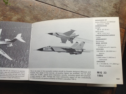 The MiG-23 was a revelation. It was Soviet, and therefore little was known about it. The painting showed a duet of zooming spaceships. They looked invincible. The designation ‘MiG-23’, later proved to be wrong. The aircraft was actually the MiG-25, the legendary ‘Foxbat’.