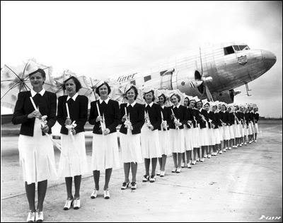 In 1912 Heinrich Kubis became the first flight attendant. It wasn’t until 1930 that a nurse called Ellen Church became the first female flight attendant or ‘air hostess’. By 1936 women were in the majority in this position, in the same year the New York Times reported “The girls who qualify for hostesses must be petite; weight 100 to 118 pounds; height 5 feet to 5 feet 4 inches; age 20 to 26 years. Add to that the rigid physical examination each must undergo four times every year, and you are assured of the bloom that goes with perfect health.”  With such patriarchal guidelines it was unsurprising that by the 1960s the air hostess had become a popular sexual fantasy figure. Women applying for this job were abhorrently discriminated against for their appearance (predominately their weight, height and perceived attractiveness) as well as their marital status (in many airlines, only single women were offered the position). Despite this, the career offered an exciting adventure at a time when many paths were closed to women. Some air hostesses from the 1960s speak of a ‘golden era’ before regulations were effectively enforced; a Rock ‘n ‘Roll life time of hard-drinking, promiscuity and glamorous locations. For better and for worse the age of the air hostess is over. Please fasten your seatbelt, close your table and prepare for your flight.