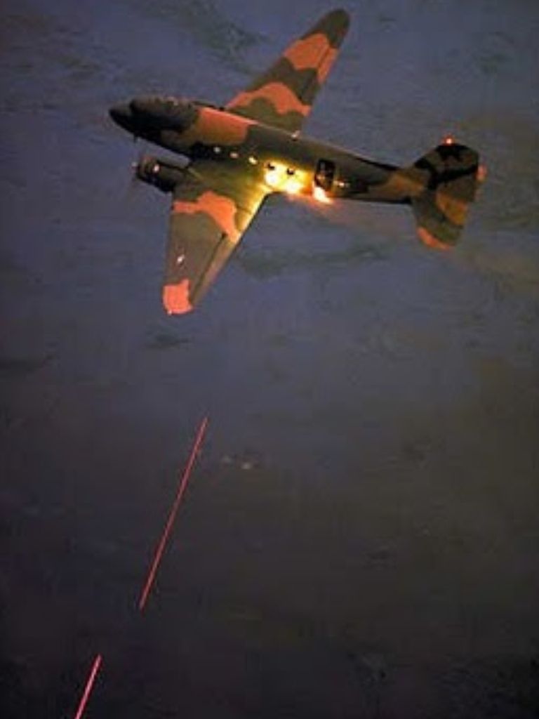 Terrifying rivers of lead and brass poured from this aircraft at 6000 rounds a minute when the AC-47 pilot activated his guns. Already a transport with an enviable list of achievements on its resume the C-47 popped up in green-and-brown camouflage as a fire support aircraft in the Vietnam war. Envisioned as a cost-effective alternative to greater numbers of existing ground attack aircraft, the Spooky was an innovative approach that proved terrifically effective. After field-based modifications using .30 calibre machine guns in pods and some rotary gun trials in the United States it was decided that three 7.62-mm electric motor driven Gatling guns firing through window ports on the pilot’s side of the aircraft would be optimal. A simple pylon turn with the left wing pointing at the target resulted in a sustained sweeping effect over a large enough ground area to disrupt enemy ambushes and assaults with dramatic success. The Spooky would soon find itself in serious demand all over South Vietnam and experience with it directly fostered our number one aircraft.