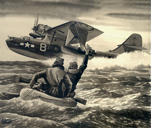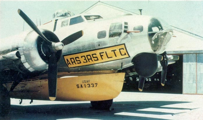 Once in the vicinity of a crash, the crew of a lifeboat bomber like the SB-17 (a converted B-17) had a challenging mission. First they would scan the water for flotsam, smoke, flares, marker dyes or lights. Often the conspicuous glimpse of a yellow dinghy on blue water revealed the presence of survivors.