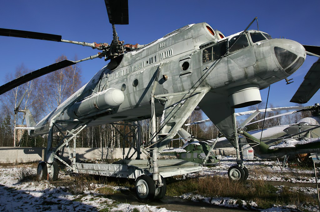 Power was to be provided by the same Shvetsov Ash-82V engine, gearbox, and rotors as used in the Mi-4 Hare. Except two of them. Presumably due to issues of sanity one was placed just above the loading ramp and the other was tilted over and squeezed behind the cockpit. To stop the blades from clashing a synchronisation shaft connected the two gearboxes and also allowed power to be transferred front to rear, or vice versa, in the event of an engine failure. Outside of this list, this has not proved a popular configuration.