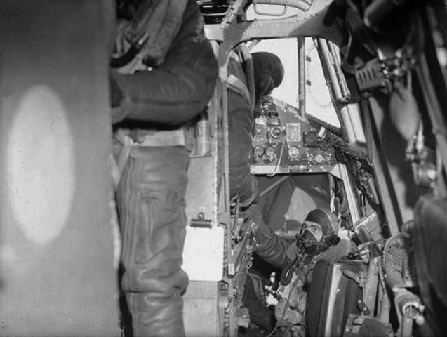 The bomb aimer would normally aid the navigator, as he had little to do until the aircraft began to approach its target. There is so little room that the navigator sat almost “knee to knee†with the wireless operator.