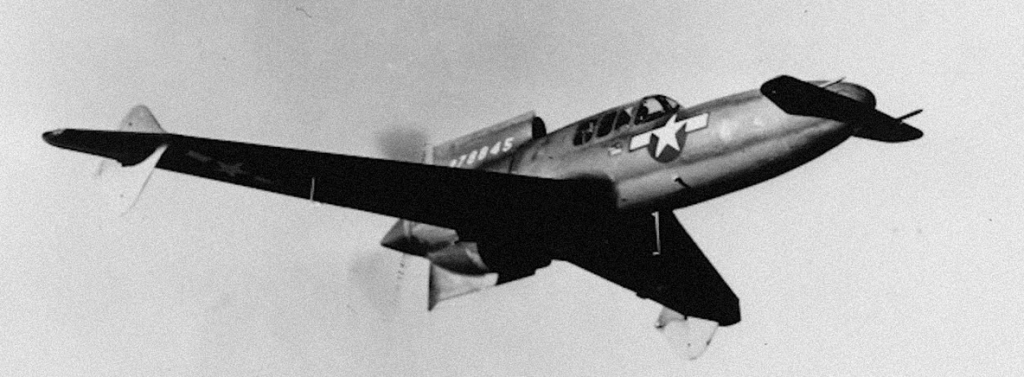 Designed to meet a 1939 specification for a well-armed high-performance fighter, the XP-55 Ascender was one of three unorthodox designs selected for development. The other two were the Vultee XP-54 Swoose Goose, and the Northrop XP-56 Black Bullet. All three aircraft were of pusher configuration; the Ascender having swept wings and a canard; the Swoose Goose having a straight wing and twin tail booms; and the Black Bullet being a tail-less flying wing.