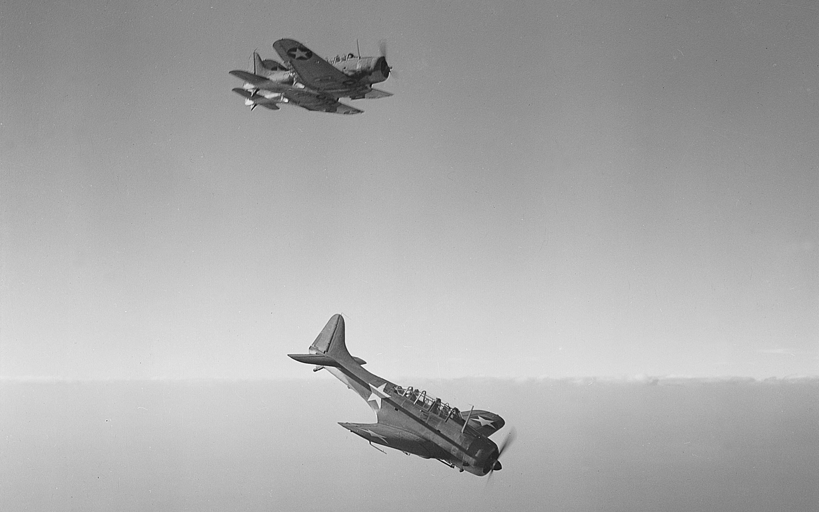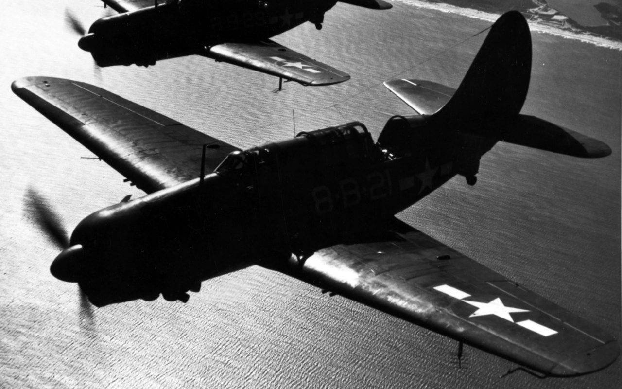 Six carriers were lost to Dauntlesses, three of them in the space of six minutes at Midway. It seems that the SBD was also a bizarrely lucky aircraft – the carrier Akagi was sunk by a mere three aircraft, each armed with just one 1000lb bomb, and it was also difficult to shoot down: for reasons that remain slightly unclear the SBD suffered the lowest loss rate of any US Navy aircraft in the Pacific War. Which is odd as the Army version, the A-24 Banshee, received such a severe mauling by Japanese fighters over New Guinea that it was relegated to non-combat duties during 1942. Unbelievably SBD crews were also officially credited with 138 aircraft shot down, 106 of these victories being over Zero fighters, and in this case it really is unbelievable because this was an overclaim of staggering proportions. The highest scoring SBD ‘ace’ crew was pilot John Leppla and gunner John Liska who were gained seven kills during the Battle of the Coral Sea. In reality no Zeros were lost to SBDs during this action.