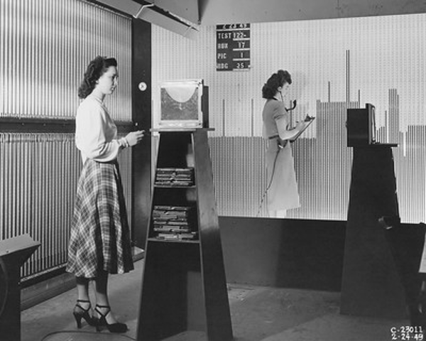 Wiring work proceeds on the wings of a wooden test model for a large, four-engine flying boat in 1946 at what would become NASA’s Langley Research Center. Sure, the finished product will be noisy and exciting and get all the attention. Behind the scenes, though, this is exactly the quiet, patient work that advances engineering and science and that women are great at.