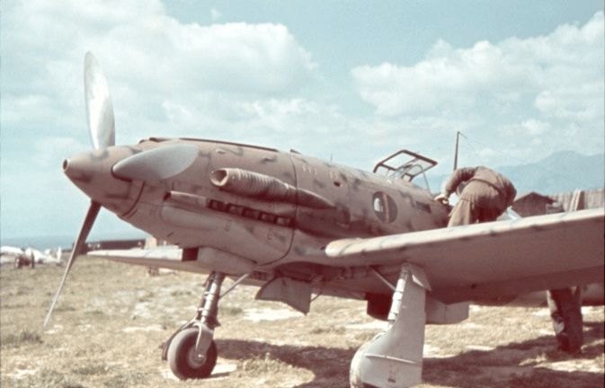 When the Italian air force took the Macchi C.200 to war on the French border, Africa and the Balkans it proved utterly and dangerously outclassed. Its Fiat radial engine generated an unimpressive 870hp, leaving it underpowered compared to Allied opposition boasting 1000hp inline powerplants. Poor thinking in the 1930s had led Italy away from adopting powerful inline engines, in favour of the promise of reliable uncomplicated radials; in reality, all this thinking had got the Regia Aeronautica was a fighter force too slow to survive. Aware of the mauling Italian fighters were receiving, the General Staff frantically turned to Alfa Romeo and Fiat begging for radials of greater power, but none were forthcoming. In desperation, they turned to their German allies to request licence-production rights for the inline Daimler-Benz DB 601, as used by the formidable Bf 109 and Bf 110. The German engine had a far smaller frontal cross-section than the Fiat engine allowing for greater streamlining and far more power. A 601 was fitted to a C.202, and the machine was also given an enclosed cockpit. Thus the ‘Folgore’ was born in 1940- and it was one hell of a fighter. With a top speed of 372mph, it was as fast or faster than contemporary Spitfires and 109s – and its climb rate was spectacular, it was also agile and of extremely rugged construction. In North Africa, the Folgore proved a viciously superior fighter to the Kittyhawks, Tomahawks, Hurricanes and Fulmars it faced.