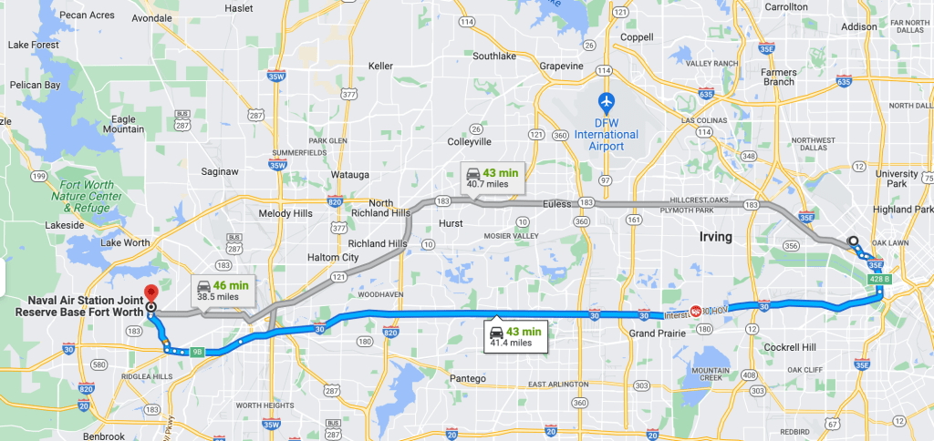 7. Naval Air Station Joint Reserve Base Fort Worth would be the nearest likely airfield. As an 80-mile flight from the book depository, it would have been well within the Seafang’s range, BUT at the time it was not in naval service. It was Carswell Air Force Base under air force command and therefore it would not have supported operations by a British naval fighter.