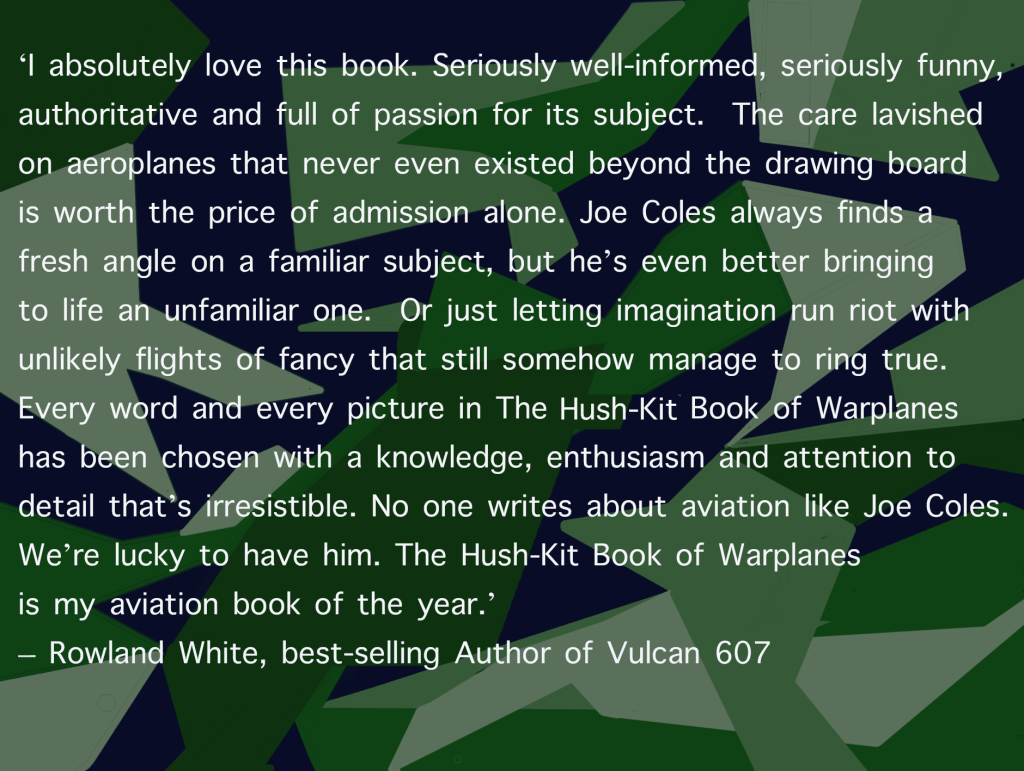 NOW AVAILABLE: The Hush-Kit Book of Warplanes, a gorgeous heavily illustrated – and often irreverent- coffee-table book covering the history of aviation 1914-the present.