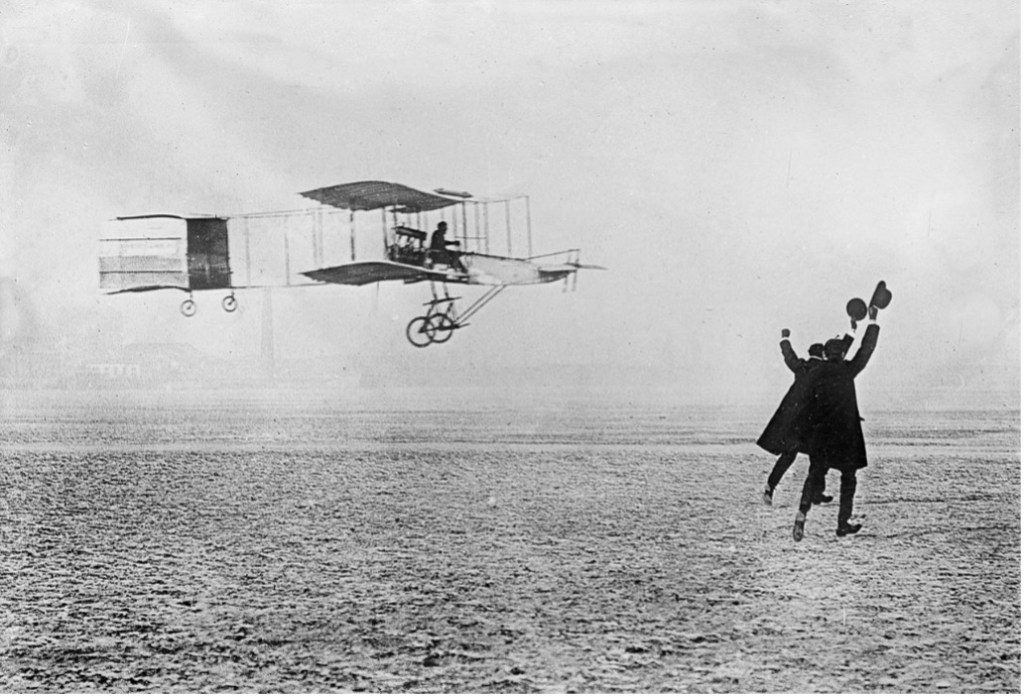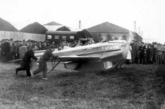 Like the American Wright Brothers, Henri Farman was a skinny guy with an interest in bicycles and natty headwear. Like so many other great innovators, Farman started with a plane built by somebody else. Henri bought his first aircraft from Gabriel Voisin in 1907 and soon started making improvements of his own, which Voisin then incorporated into production aircraft. It was one of these hybrids that Farman used to set records for distance, duration, and actually landing where you intended to. Perhaps the most remarkable thing about the design, however, is that if you cover over the tail with your hand, it now looks like Henri is flying a much later biplane backwards.