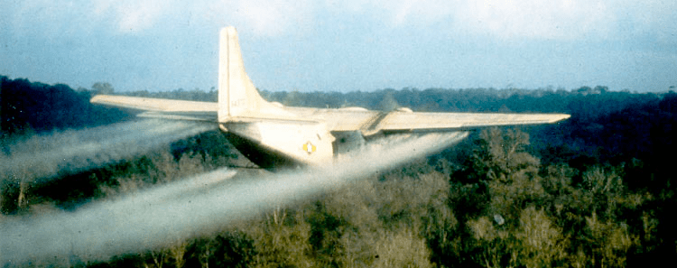 Agent Orange was just one of a diabolical gang of quaintly-named Rainbow Herbicides. Inspired by British use of toxic jungle-killing chemicals in the so-called ‘Malayan Emergency’*, US forces attempted to expose Viet Cong forces by removing the cover allowed by dense jungle, and to destroy crops to starve them out. Secretary of State Dean Rusk advised President John F. Kennedy that the British cop-out* had established a precedent of legality. A decade (61-71) of air deployed anti-crop and defoliation efforts left the ground poisoned and resulted in massive long-term health problems and terrible birth defects for the unlucky civilian population.