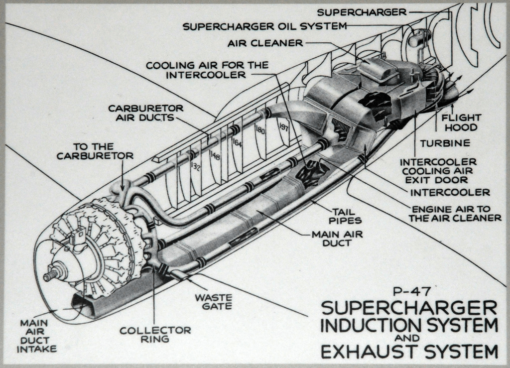 The downside of a turbo-supercharger is that the installation occupies a lot of space. Fortunately the P-47 was already being drawn as a large fighter, and Kartveli was able to squeeze the turbo and even larger intercooler into the belly of the aircraft. This packaging is the primary reason the aircraft looks more like a pregnant whale rather than a sleek fighter, thus contributing to the perception of it being a dog.