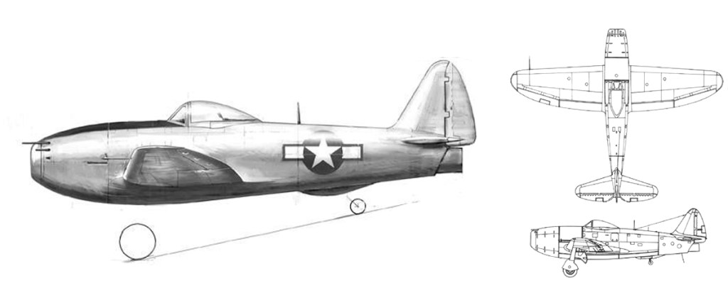 At last! It’s the P-47 itself. Or is it? Not exactly, for the first design to be actually designated the P-47 was, bizarrely, a small, lightweight fighter designed around the Allison V-1710 V-12 inline engine – a distinct departure from the huge, radial engine powered heavyweight we know and love (or are barely aware of and totally indifferent towards).