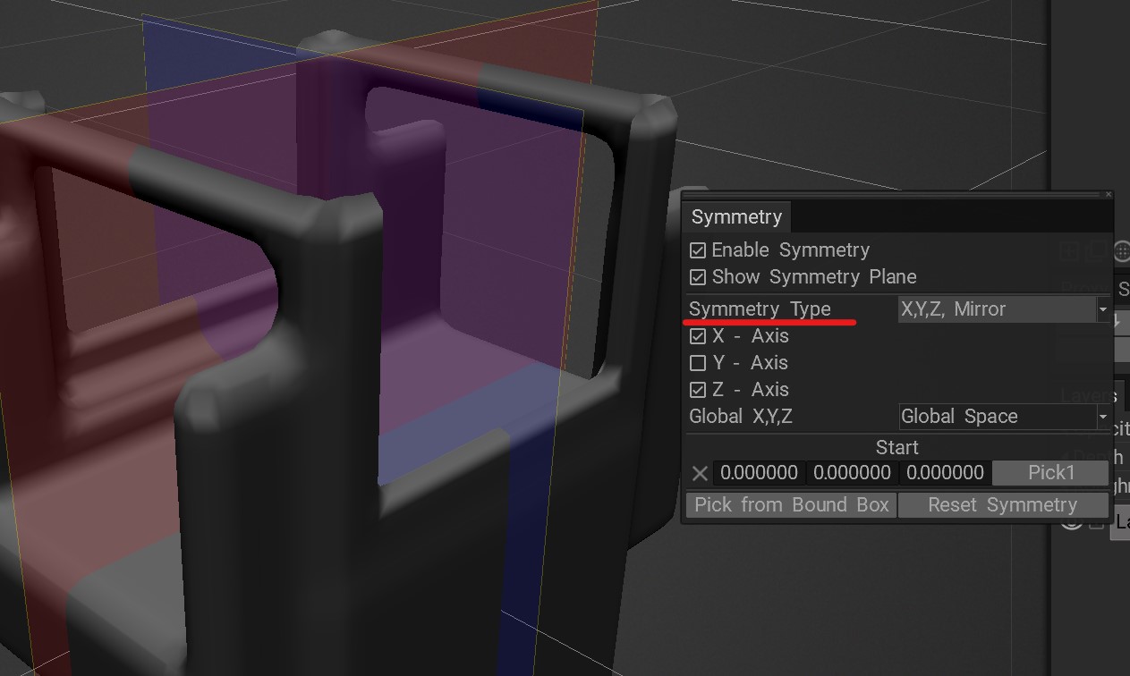 Copy the voxel volume by axis plane by enabling X,Y,Z Mirror and choosing the planes you want to mirror.