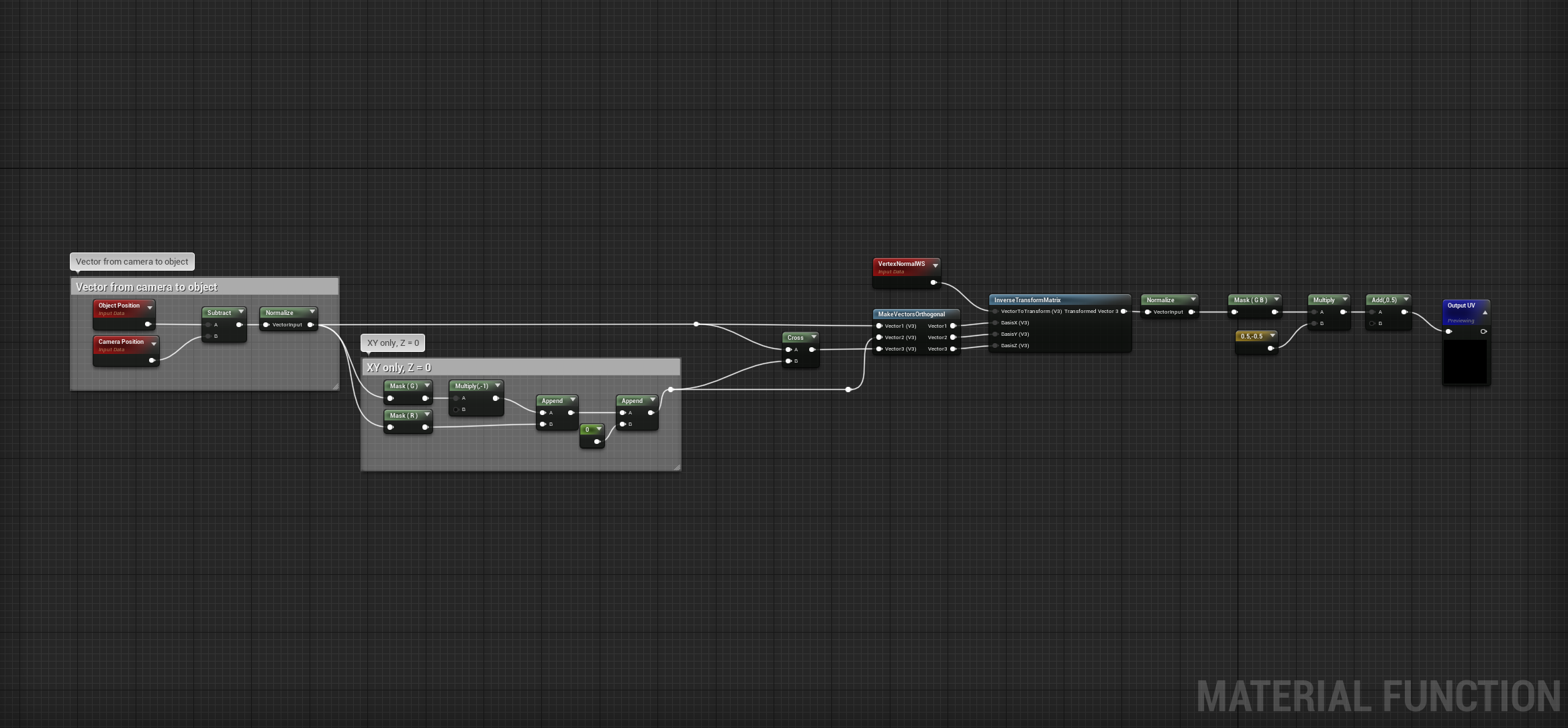 I decided to create my own shader which would generate matcap UVs without factoring in camera roll. This was achieved by transforming the vertex normals by the XY direction from the camera to the object.