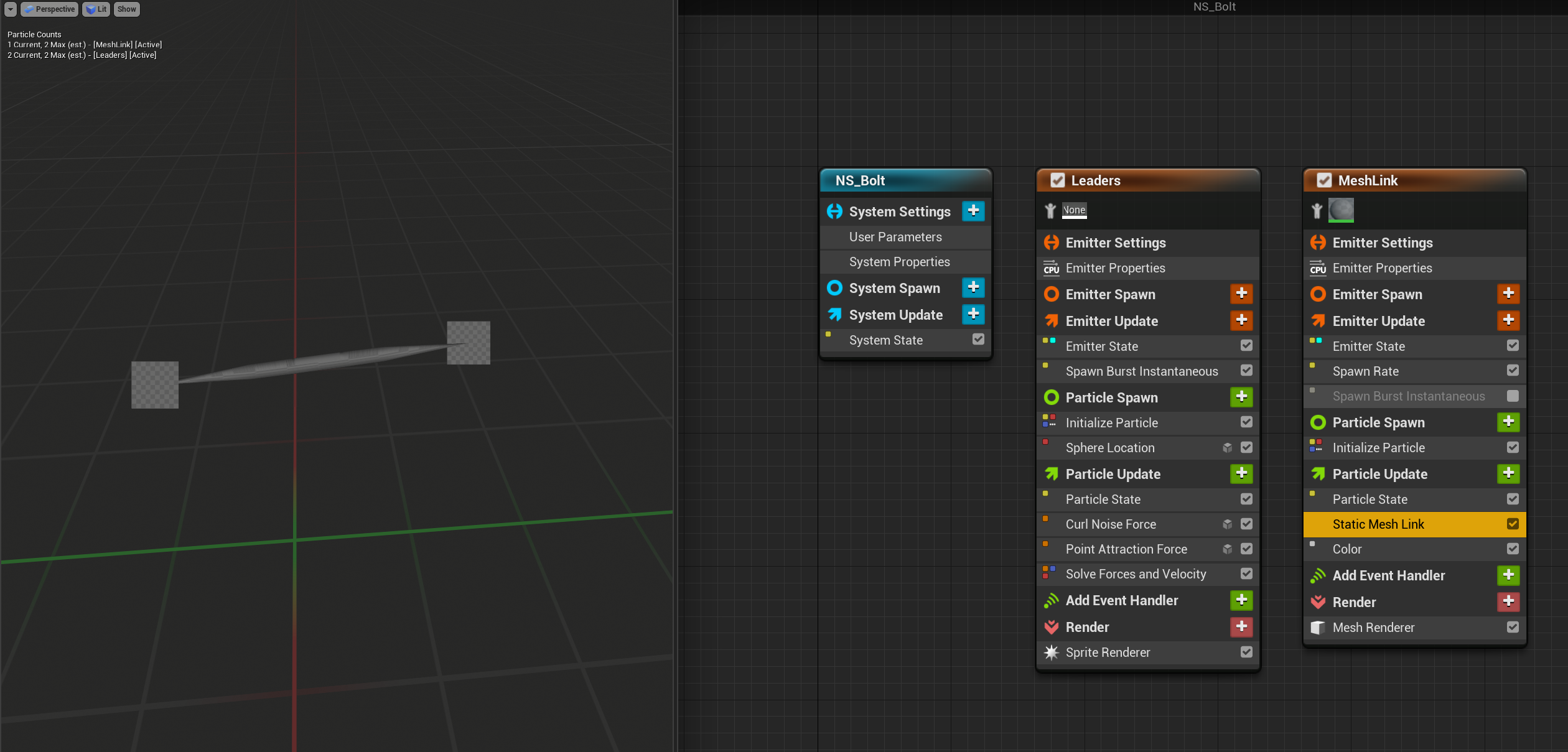 I wanted to try and create a linked structure from a particle burst without using the ribbon render, primarily because ribbons are difficult to control and because they are more expensive than mesh particles.