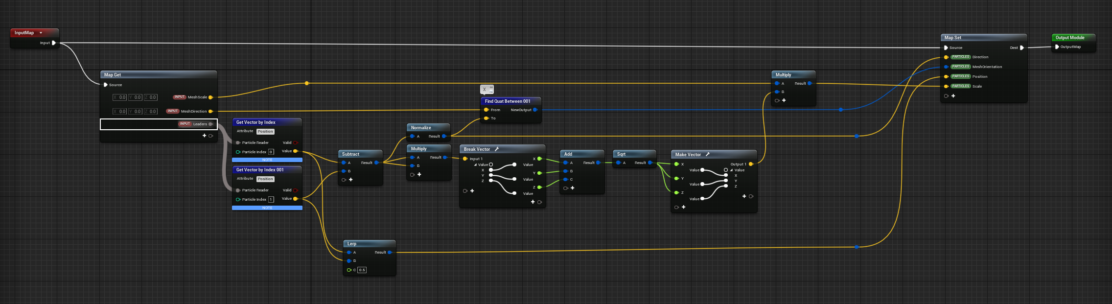 For the electrical arcing effect I developed the module script further so that it can be used in both world and local space, and I set it up to read the normals of the sampled mesh vertices for use in orienting the mesh links outwards and also for driving the mesh link velocity.