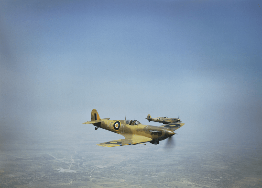 For Malta, Spitfire Vs had to be hastily adapted, with the Vokes filter and a slipper fuel tank. They would need to fly from the decks of carriers, then over 800 miles across the Mediterranean and its Axis-dominated shores to the tiny bombed-out island citadel. Here, once reunited with the great Spitfire commander Keith Park, they defeated Kesselring’s massive bomber campaign, inflicting crushing losses and extinguishing Axis plans for invasion. The Canadian George Buerling led a pack of aces, running up 27 victories in just four months of fighting. Spitfire claims during the Malta air battles eventually reached over 680 victories. In North Africa, a small number of Spitfires would provide top cover while Coningham’s Desert Air Force fighter bombers wrought havoc below among the Afrika Korps in the weeks and months as they tried to follow up their crushing victories of Gazala and Tobruk. In both cases, the Spitfire V, under the superb fighter generalship of Park, Coningham and others, played a hugely significant tactical role in major strategic victories which turned the tide of the entire war.