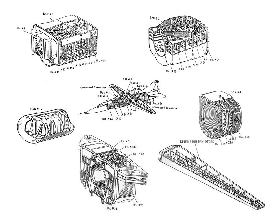 The MiG-23MS had the largest internal fuel capacity of any MiG-23 fighter variant. Since it didn’t have the heavy and voluminous Sapfir-23D-III radar of the MiG-23M, a part of the avionics bay behind the cockpit could be used for more fuel. The extra space was used to install fuel tank â„– 1a, and tank â„– 1 was larger, same as on the MiG-23BN. This meant that the MiG-23MS had 5400 litres of usable internal fuel (again, same as on the MiG-23BN). Total internal fuel was 5626 litres. For comparison, the MiG-23M and MF had 4700 litres of usable internal fuel (4910-4928 L of total internal fuel). The MiG-23ML had an even smaller internal capacity, since it doesn’t have fuel tank â„– 4 either. Just 4300 L usable internal fuel volume, 4440-4458 L of total volume. The worst was the MiG-23UB, with 4240 L total internal fuel volume.
