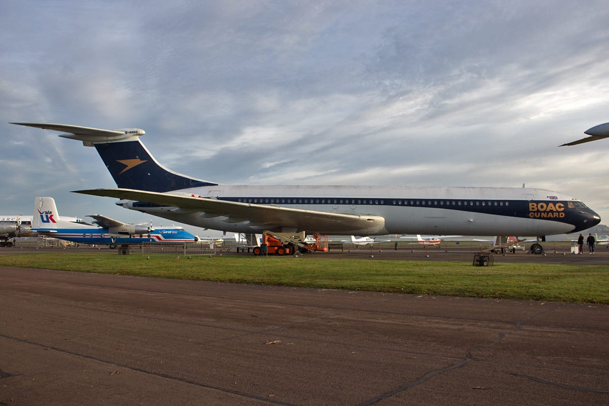 The VC10 was born close to Weybridge in Surrey, England at Brooklands. This was the centre of British speed, both motor racing and aircraft production. Brooklands was where the Hurricane took its first flight, and was instrumental in creating the declinist poster-boy, the cancelled TSR.2 bomber (number 15 in terms of votes).